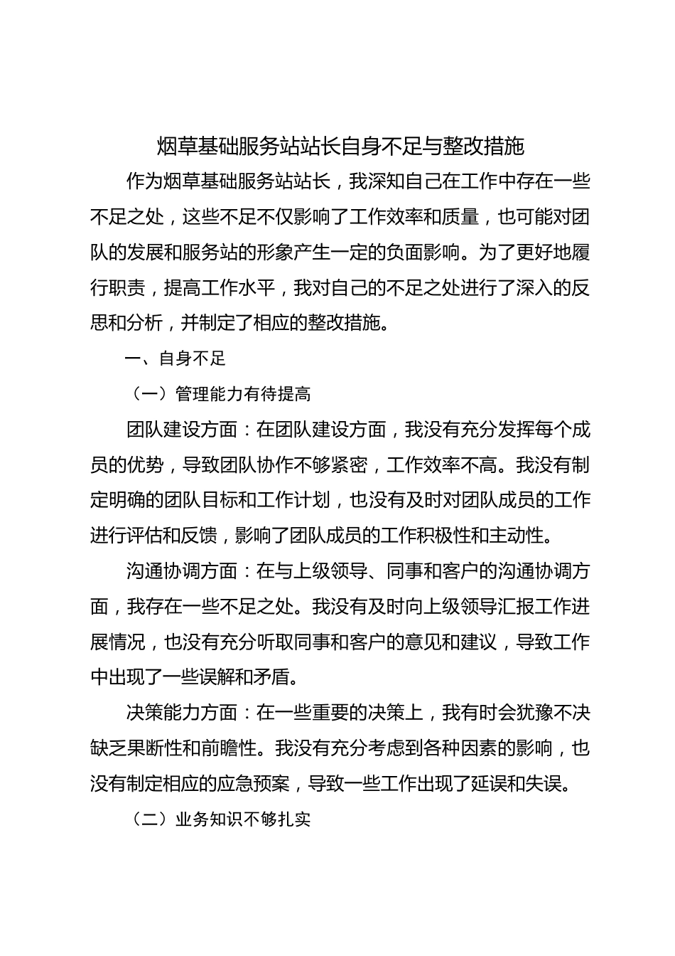 煙草基礎(chǔ)服務(wù)站站長自身不足與整改措施VIP免費(fèi)