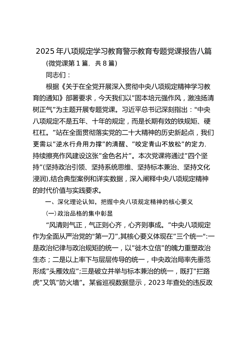 2025年八項規(guī)定學習教育警示教育專題黨課報告八篇VIP免費