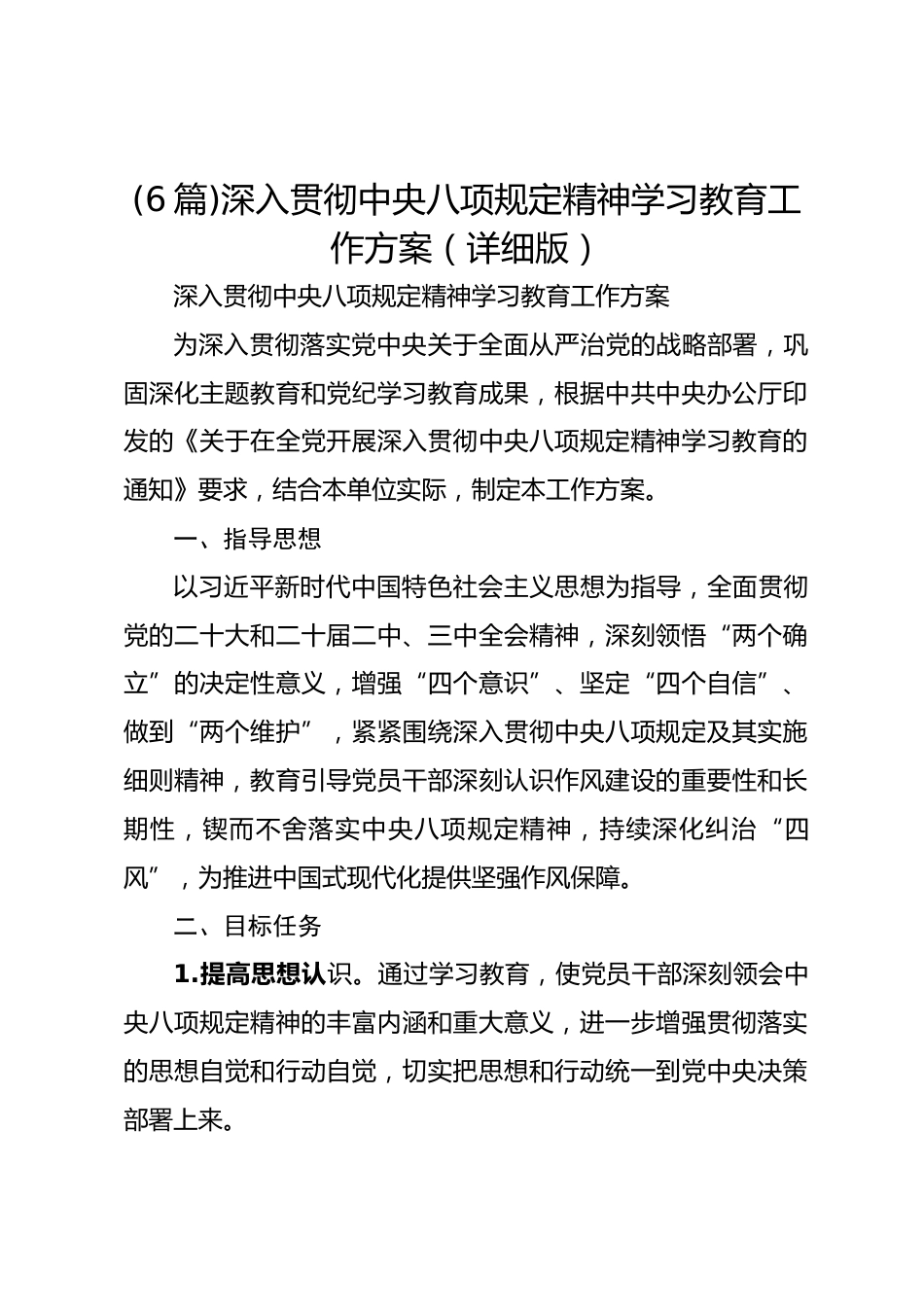 (6篇)深入貫徹中央八項規(guī)定精神學(xué)習(xí)教育工作方案(詳細版)VIP免費
