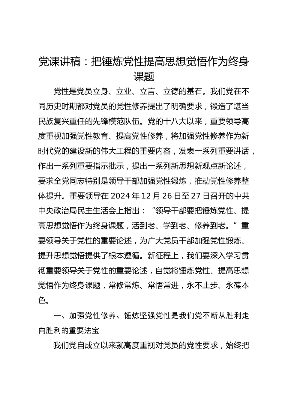 黨課講稿:把錘煉黨性提高思想覺悟作為終身課題VIP免費
