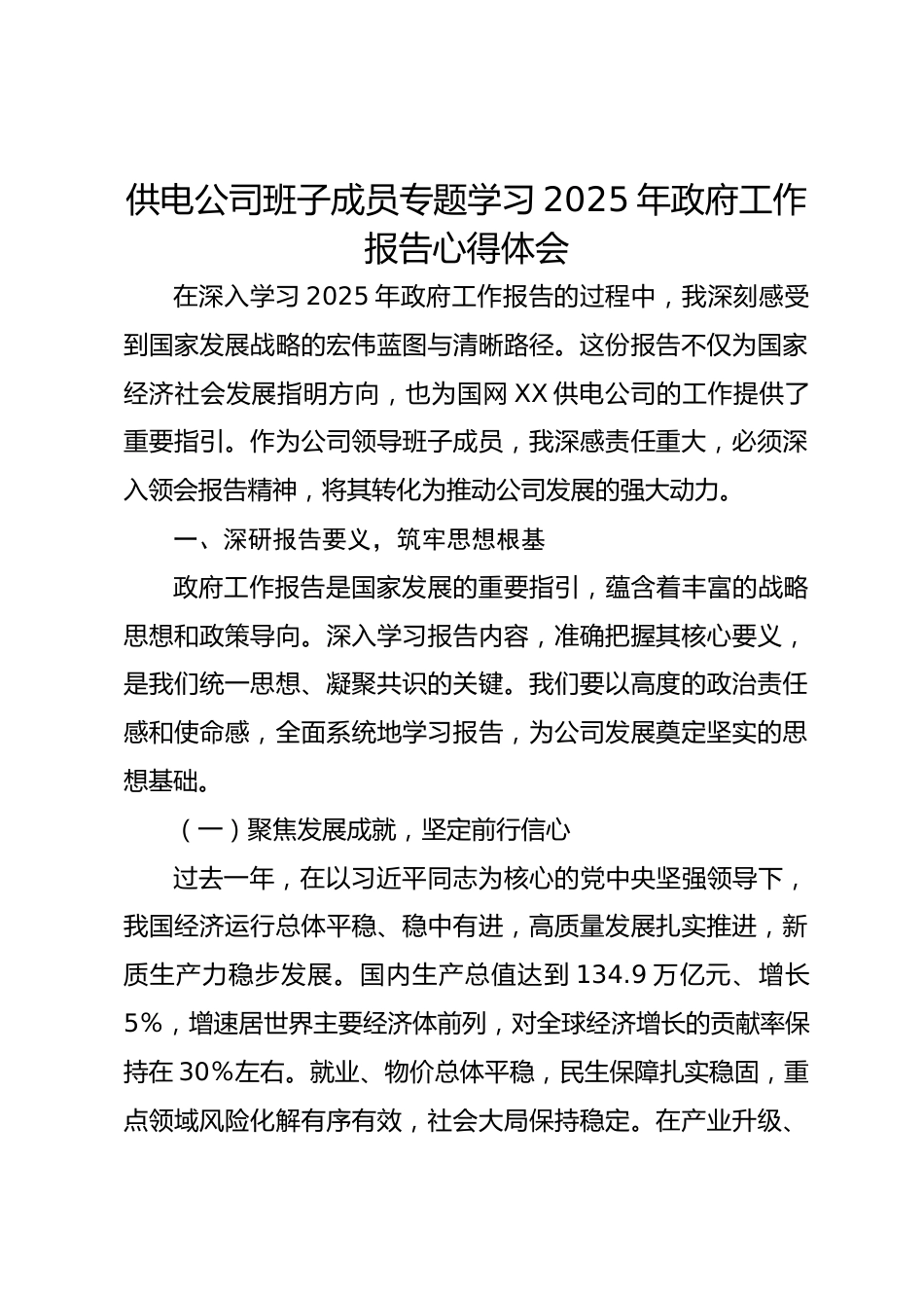 供電公司班子成員專題學(xué)習(xí)2025年政府工作報告心得體會VIP免費