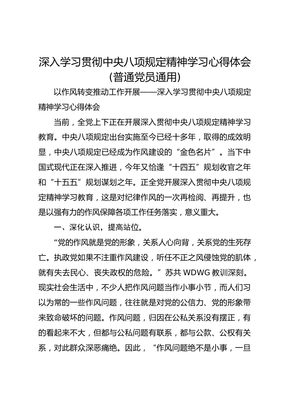深入學(xué)習(xí)貫徹中央八項(xiàng)規(guī)定精神學(xué)習(xí)心得體會(普通黨員通用)VIP免費(fèi)