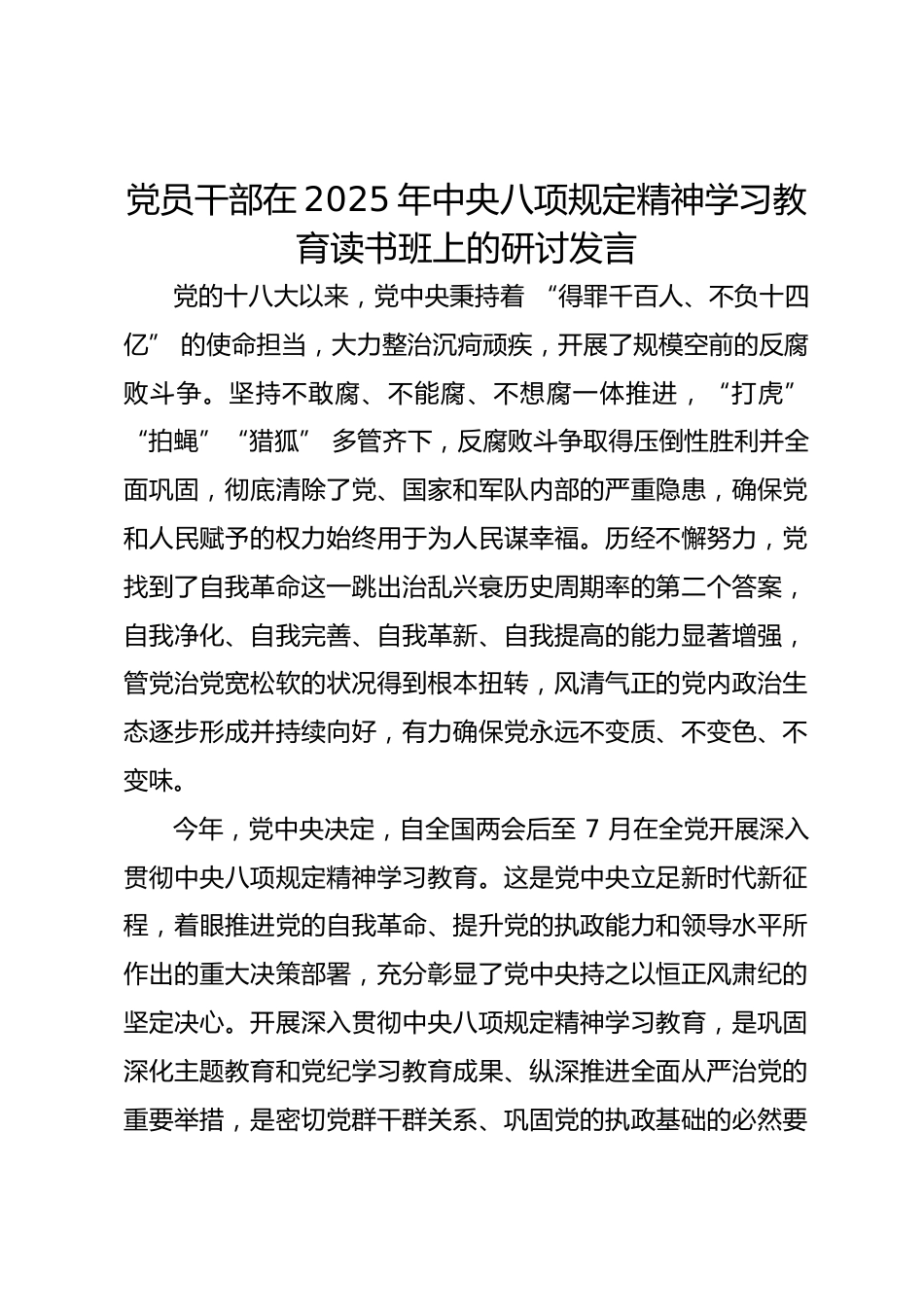黨員干部在2025年中央八項(xiàng)規(guī)定精神學(xué)習(xí)教育讀書班上的研討發(fā)言VIP免費(fèi)