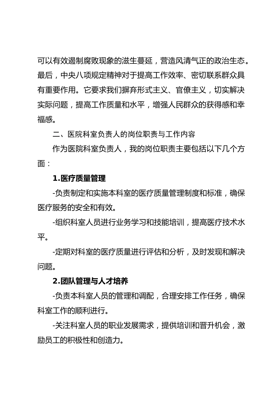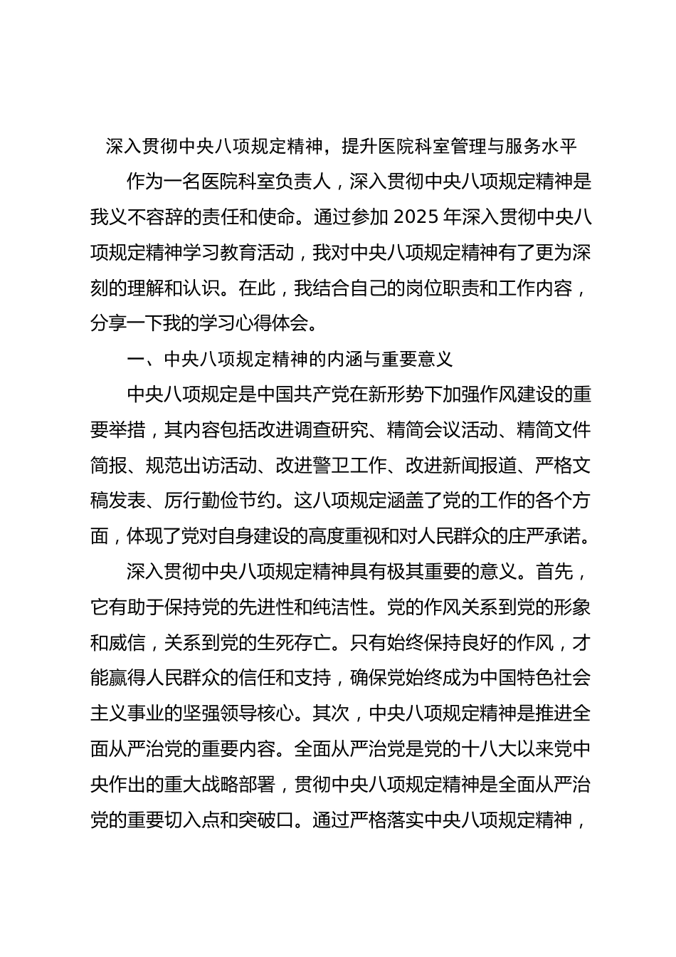 醫(yī)院科室負(fù)責(zé)人2025年深入貫徹中央八項(xiàng)規(guī)定精神學(xué)習(xí)教育心得體會(huì)(研討發(fā)言)VIP免費(fèi)