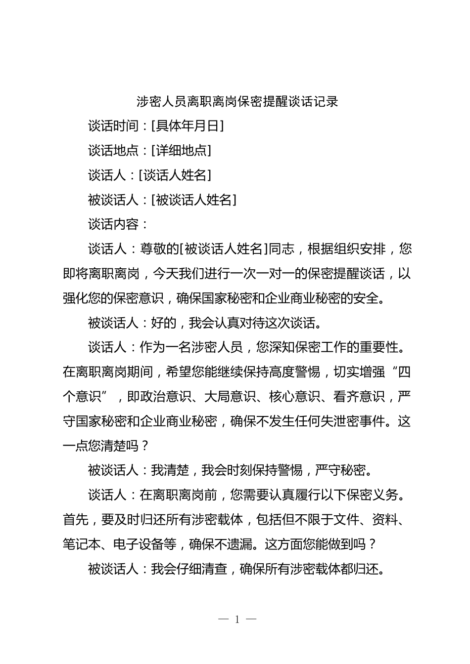 涉密人員離職離崗保密提醒談話記錄、VIP免費(fèi)