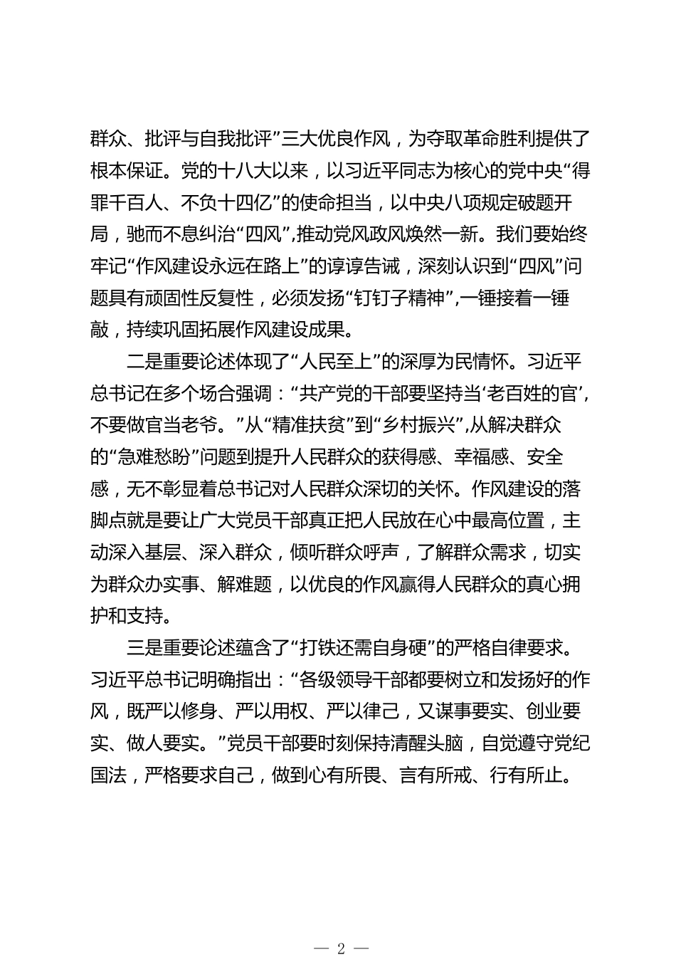 黨員干部學(xué)習(xí)《習(xí)近平關(guān)于加強(qiáng)黨的作風(fēng)建設(shè)論述摘編》的研討發(fā)言材料工作總結(jié)VIP免費(fèi)