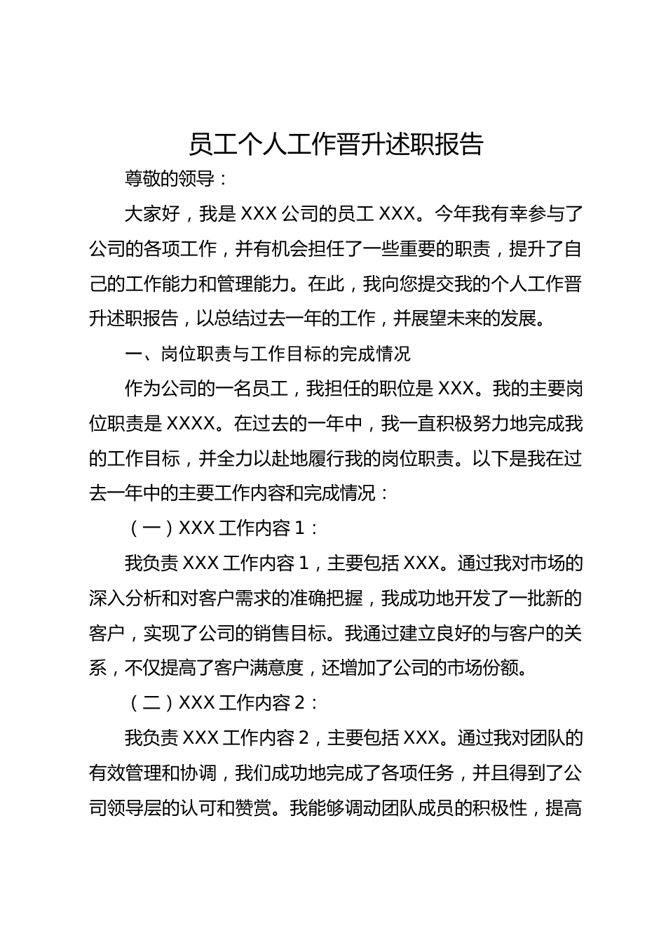 員工個(gè)人工作晉升述職報(bào)告VIP免費(fèi)