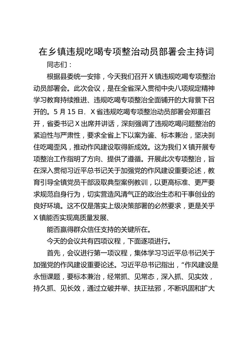 在鄉(xiāng)鎮(zhèn)違規(guī)吃喝專項整治動員部署會主持講話VIP免費