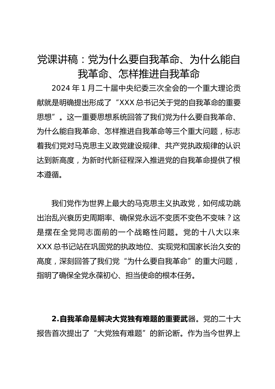 黨課講稿:黨為什么要自我革命、為什么能自我革命、怎樣推進自我革命VIP免費