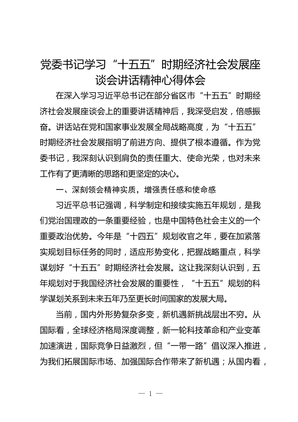 黨委書記學習“十五五”時期經(jīng)濟社會發(fā)展座談會講話精神心得體會VIP免費