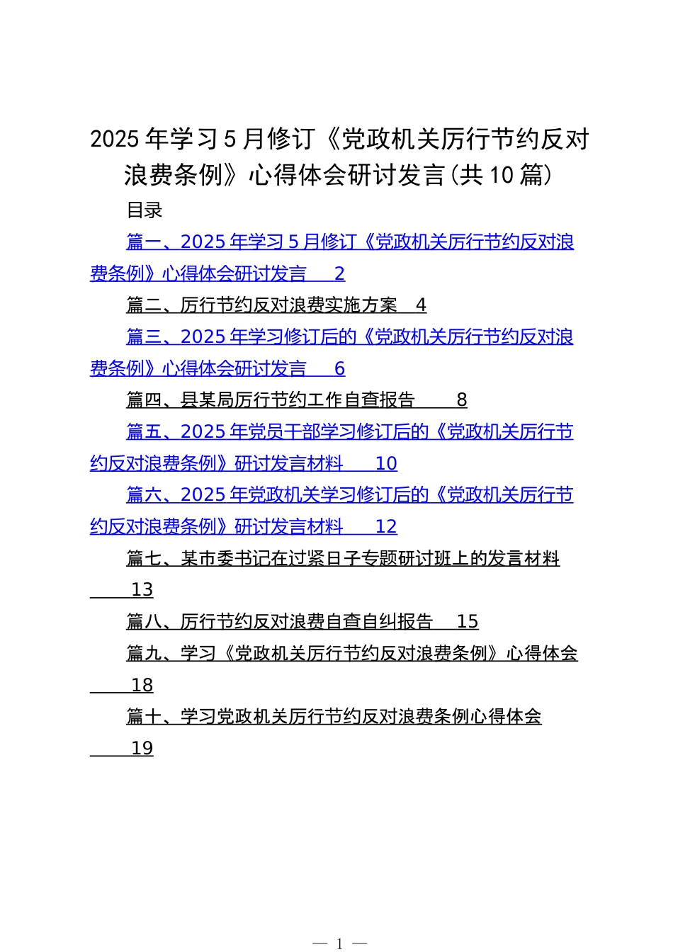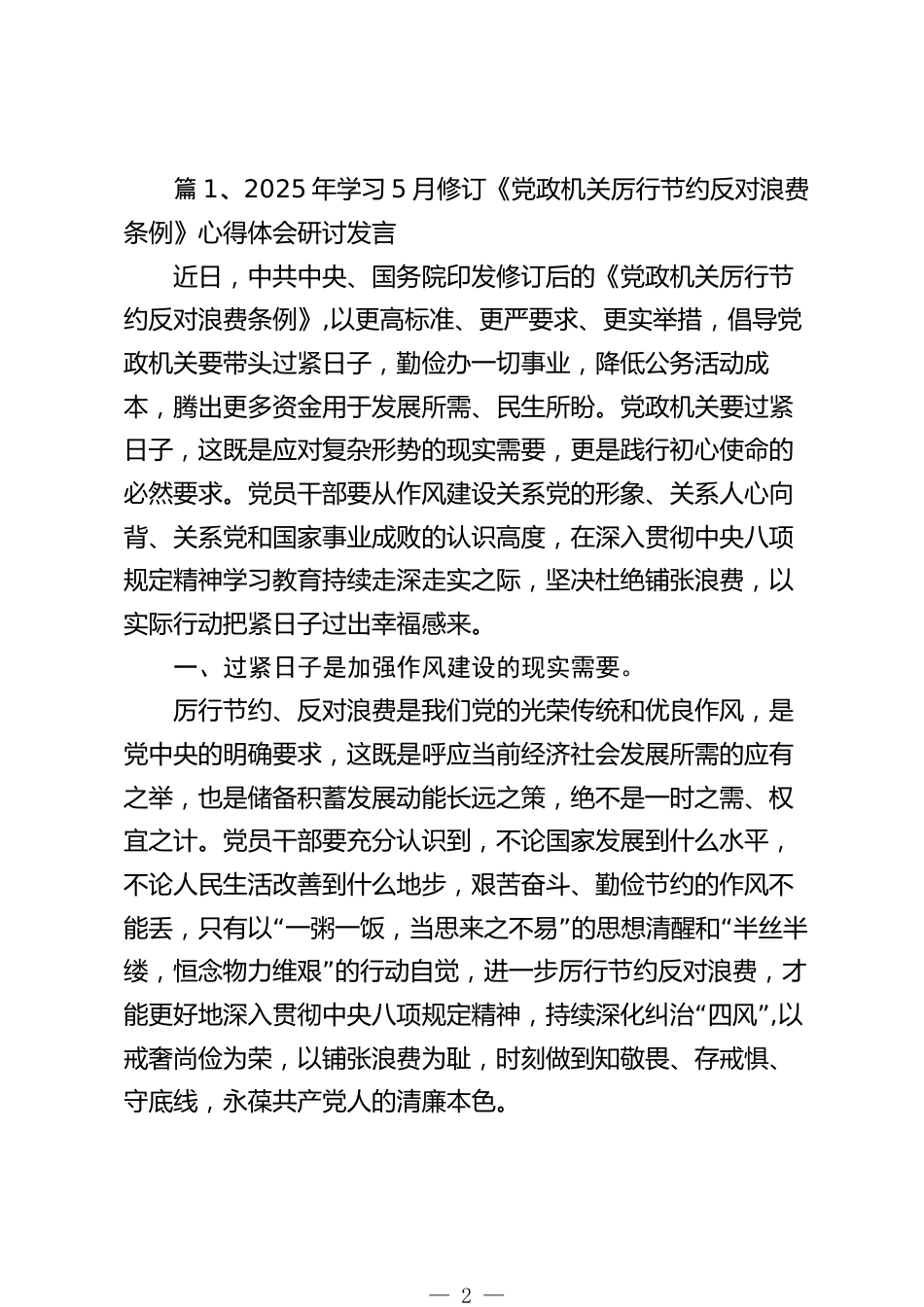 2025年學(xué)習(xí)月修訂《黨政機關(guān)厲行節(jié)約反對浪費條例》心得體會研討發(fā)言(共10篇)VIP免費
