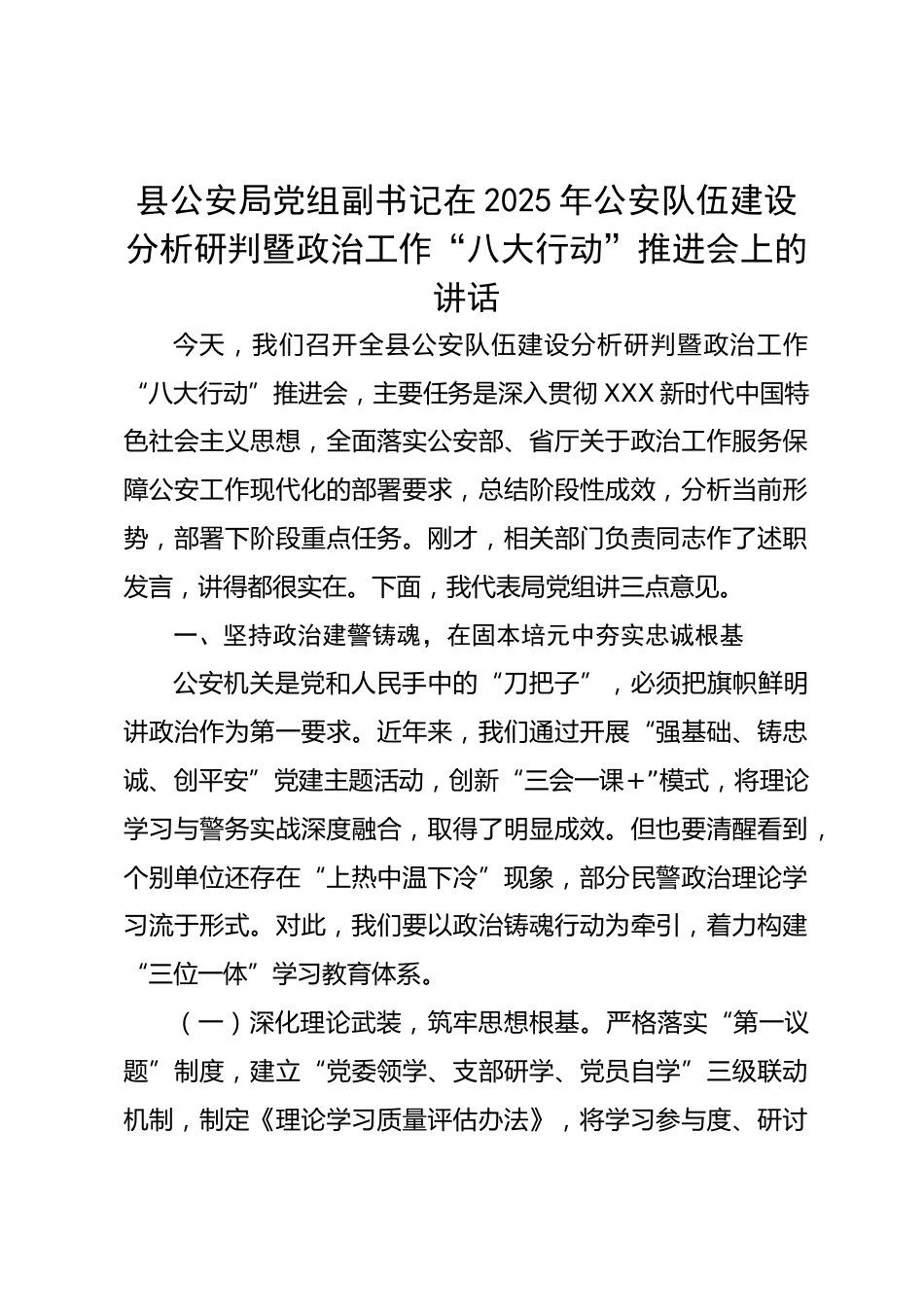 縣公安局黨組副書記在2025年公安隊伍建設(shè)分析研判暨政治工作“八大行動”推進會上的講話VIP免費