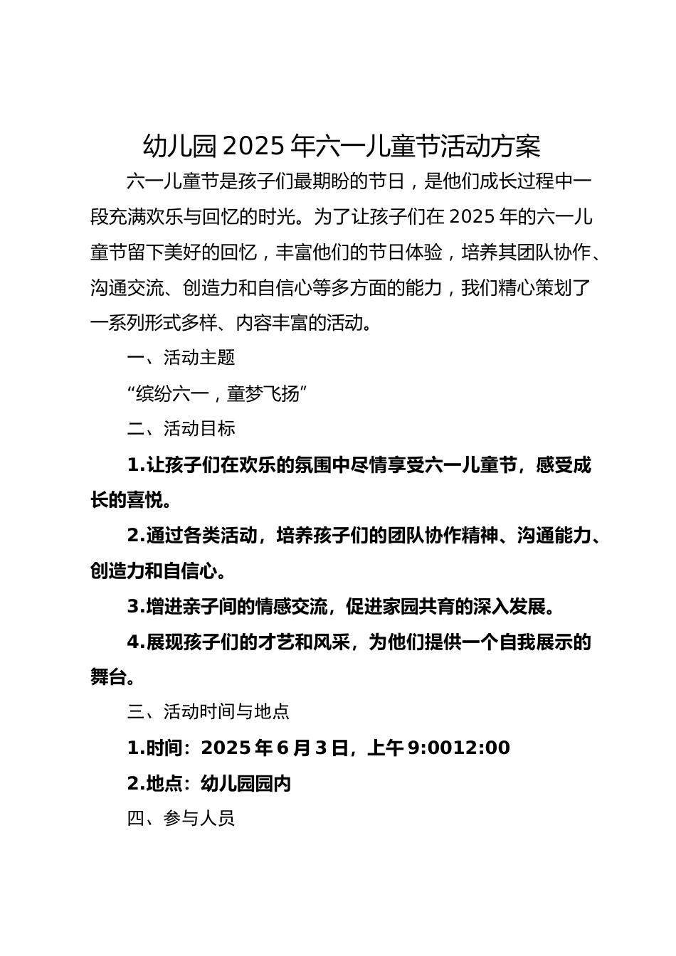幼兒園2025年六一兒童節(jié)活動方案VIP免費