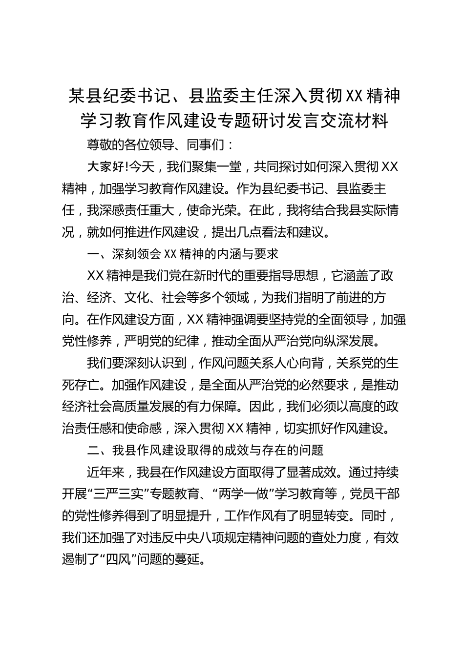 某縣紀(jì)委書記、縣監(jiān)委主任深入貫徹XX精神學(xué)習(xí)教育作風(fēng)建設(shè)專題研討發(fā)言交流材料2VIP免費(fèi)