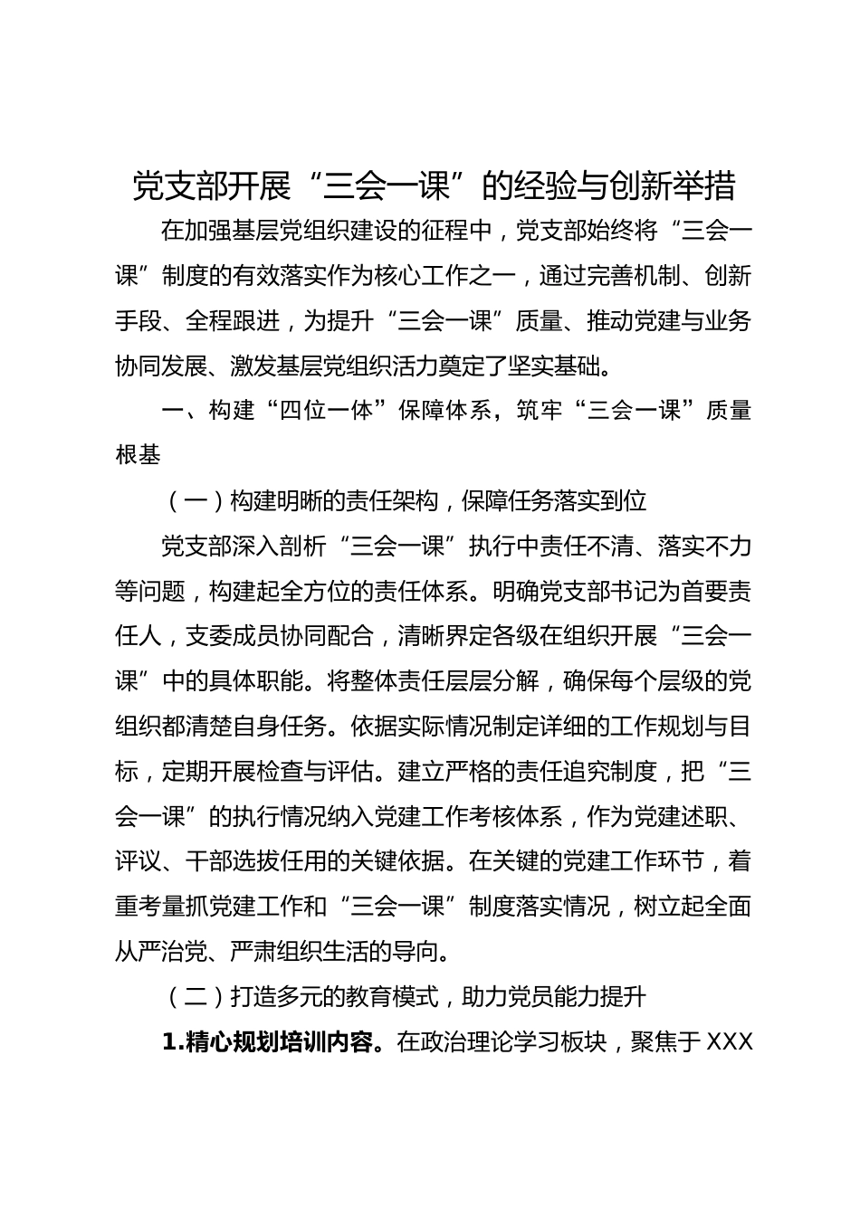 黨支部開展“三會一課”的經(jīng)驗與創(chuàng)新舉措VIP免費