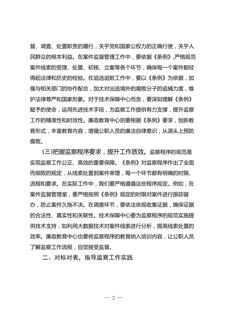 深學細悟監(jiān)察法規(guī),篤行監(jiān)督執(zhí)紀之責——在《監(jiān)察法實施條例》研討會上的發(fā)言同志們:在全面推進依法治國、深入開展黨風廉政建設和反腐敗斗爭的時代背景下,《中華人民共和國監(jiān)察法實施條例》(以下簡稱《條例》)的修訂實施意義重大。作為市紀委常委,我深感責任在肩。通過深入學習《條例》,結(jié)合分管工作實際,我有以下幾點體會與大家交流。一、深研細悟,精準把握《條例》要義《條例》作為監(jiān)察法的細化和補充,為監(jiān)察工作提供了更為具體、詳實的操作指南。深入學習《條例》,是我們準確履行職責的基礎。我們必須逐章逐條研讀,領會其精神實質(zhì),把握其核心要義。(一)領會《...