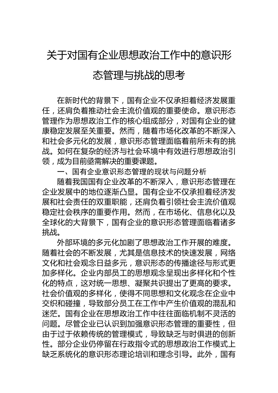 關(guān)于對國有企業(yè)思想政治工作中的意識(shí)形態(tài)管理與挑戰(zhàn)的思考VIP免費(fèi)
