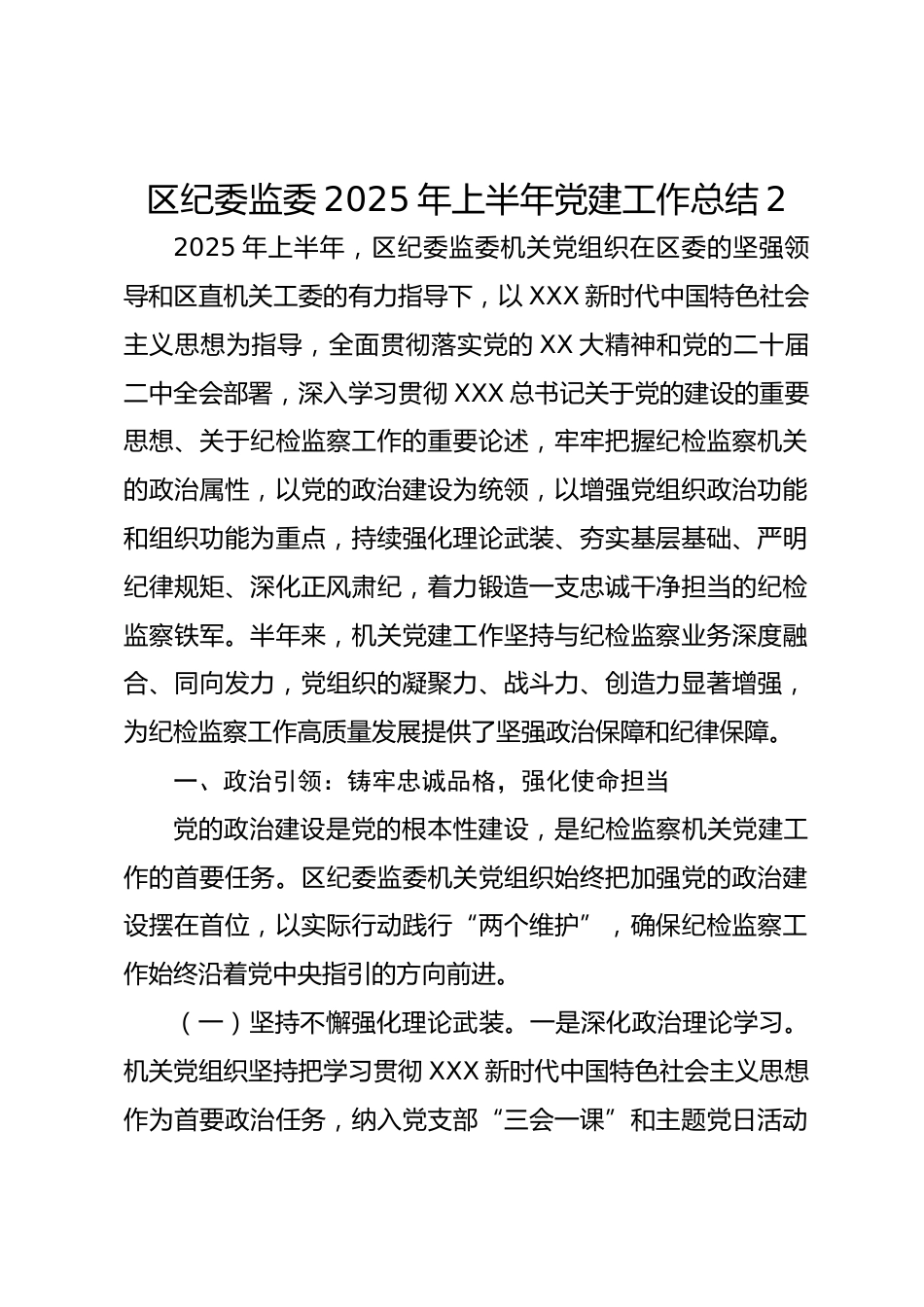 區(qū)紀委監(jiān)委2025年上半年黨建工作總結2VIP免費