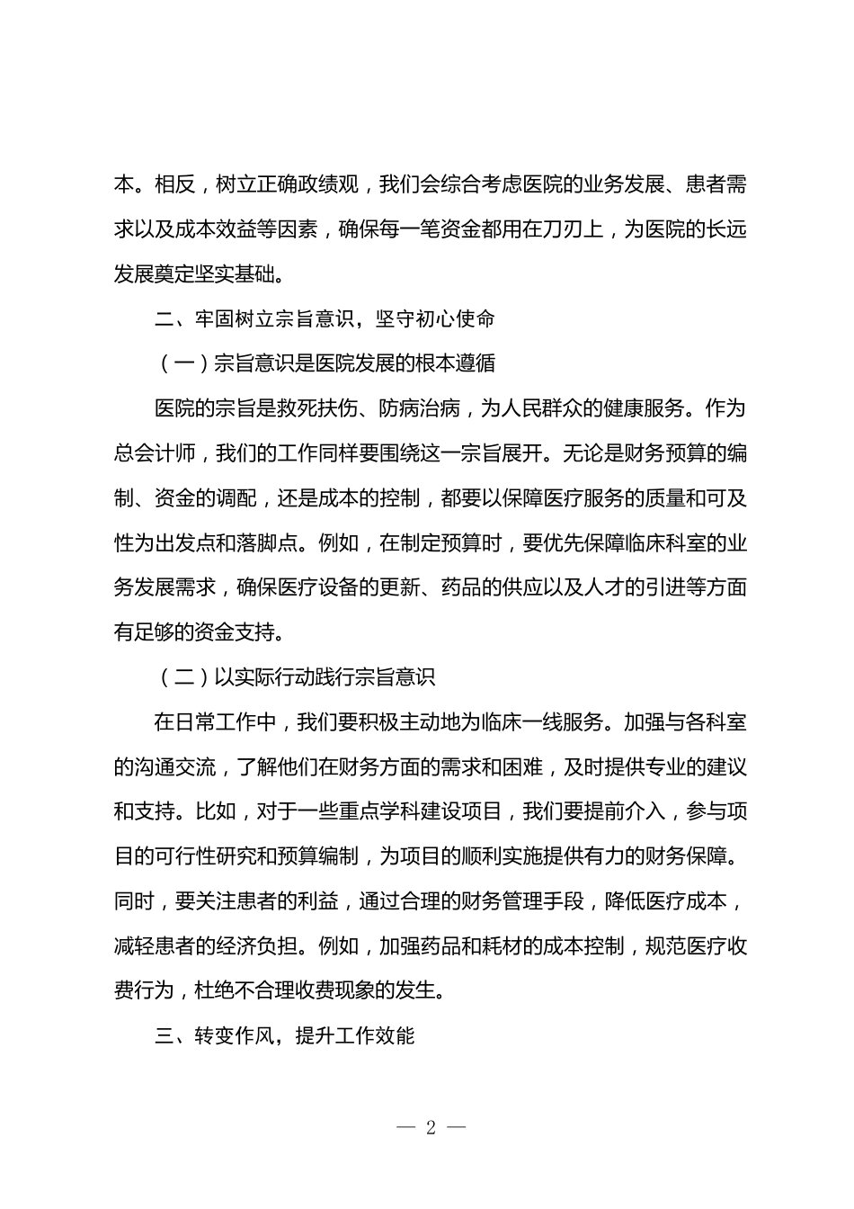 醫(yī)院總會(huì)計(jì)師關(guān)于”樹牢正確政績(jī)觀,樹牢宗旨意識(shí),轉(zhuǎn)變作風(fēng),履職擔(dān)當(dāng)“的研討發(fā)言材料VIP免費(fèi)
