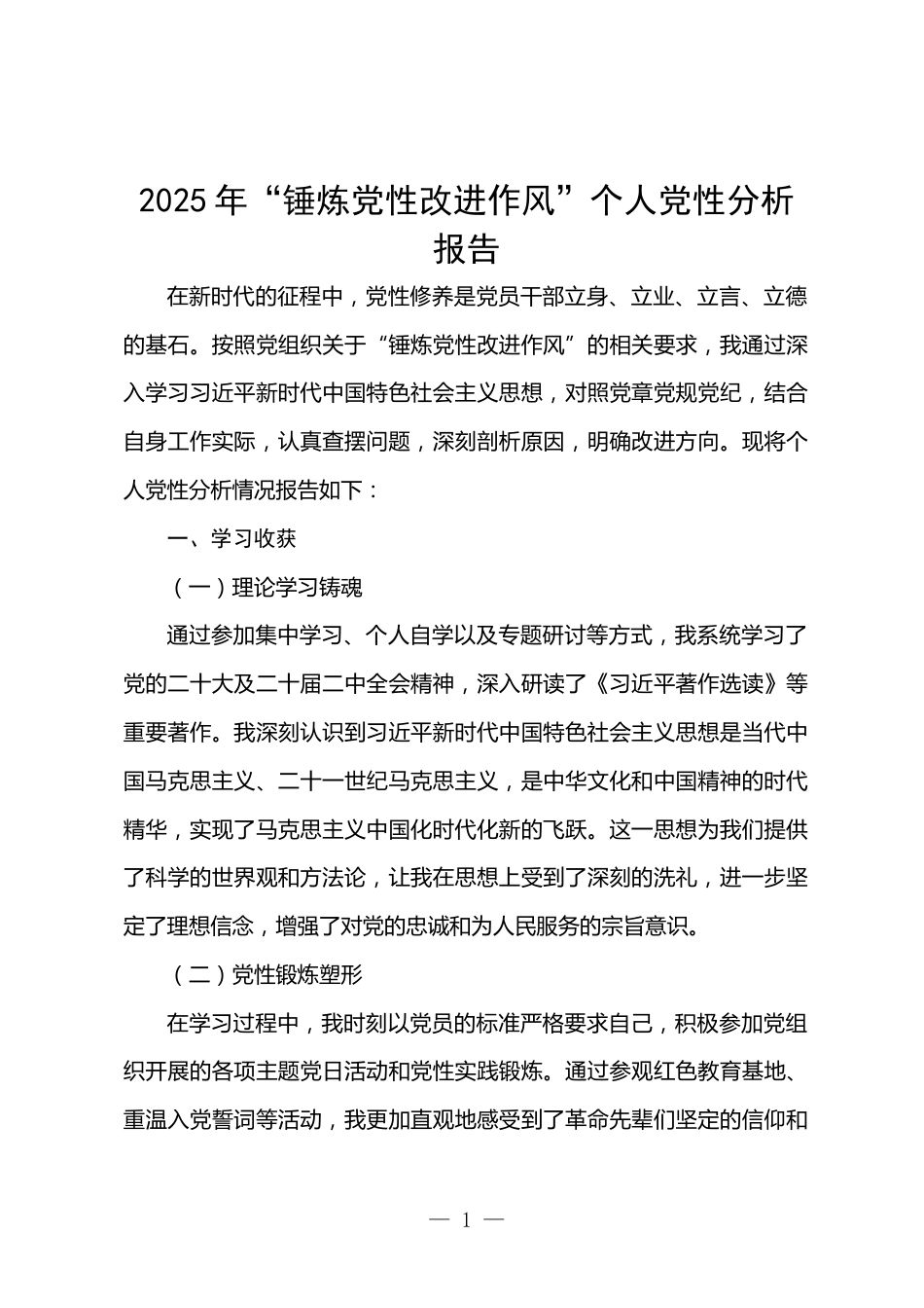 2025 年“錘煉黨性改進作風(fēng)”個人黨性分析報告VIP免費