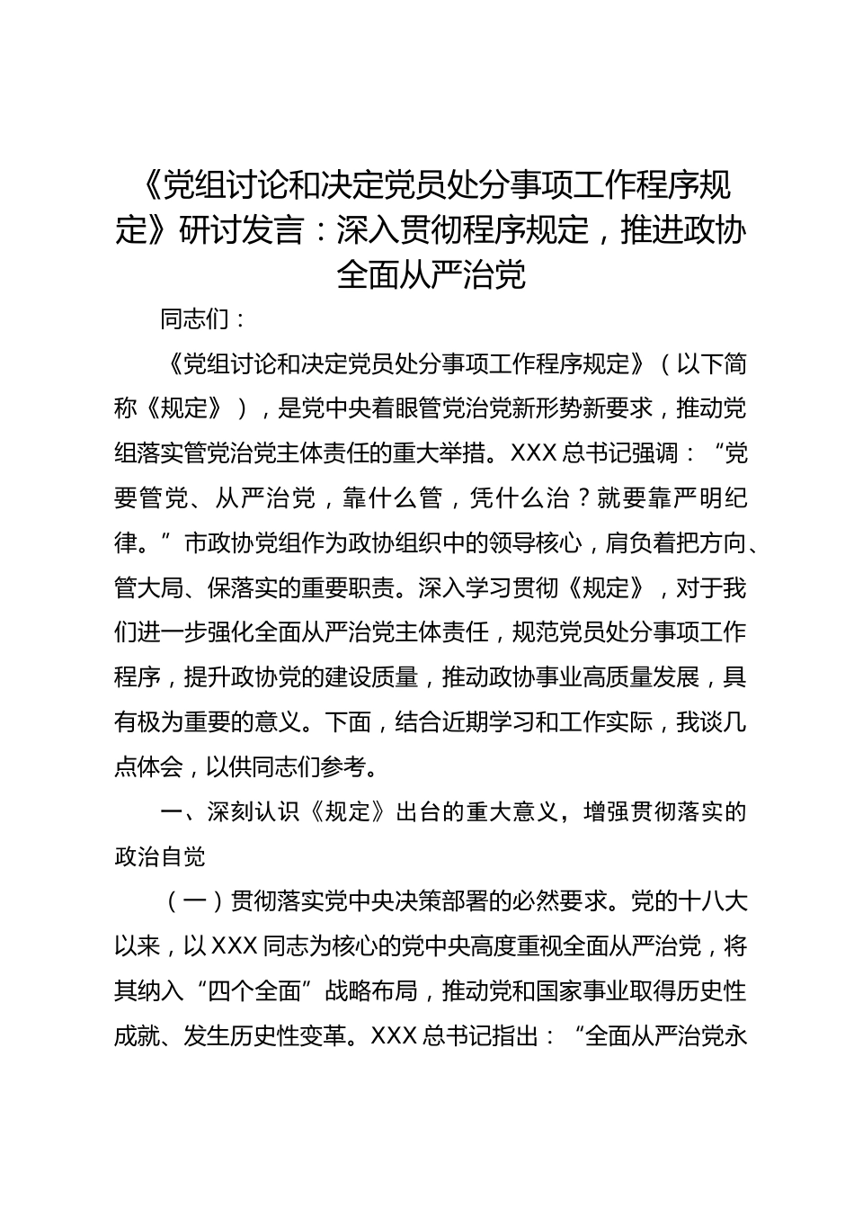 《黨組討論和決定黨員處分事項(xiàng)工作程序規(guī)定》研討發(fā)言:深入貫徹程序規(guī)定,推進(jìn)政協(xié)全面從嚴(yán)治黨VIP免費(fèi)