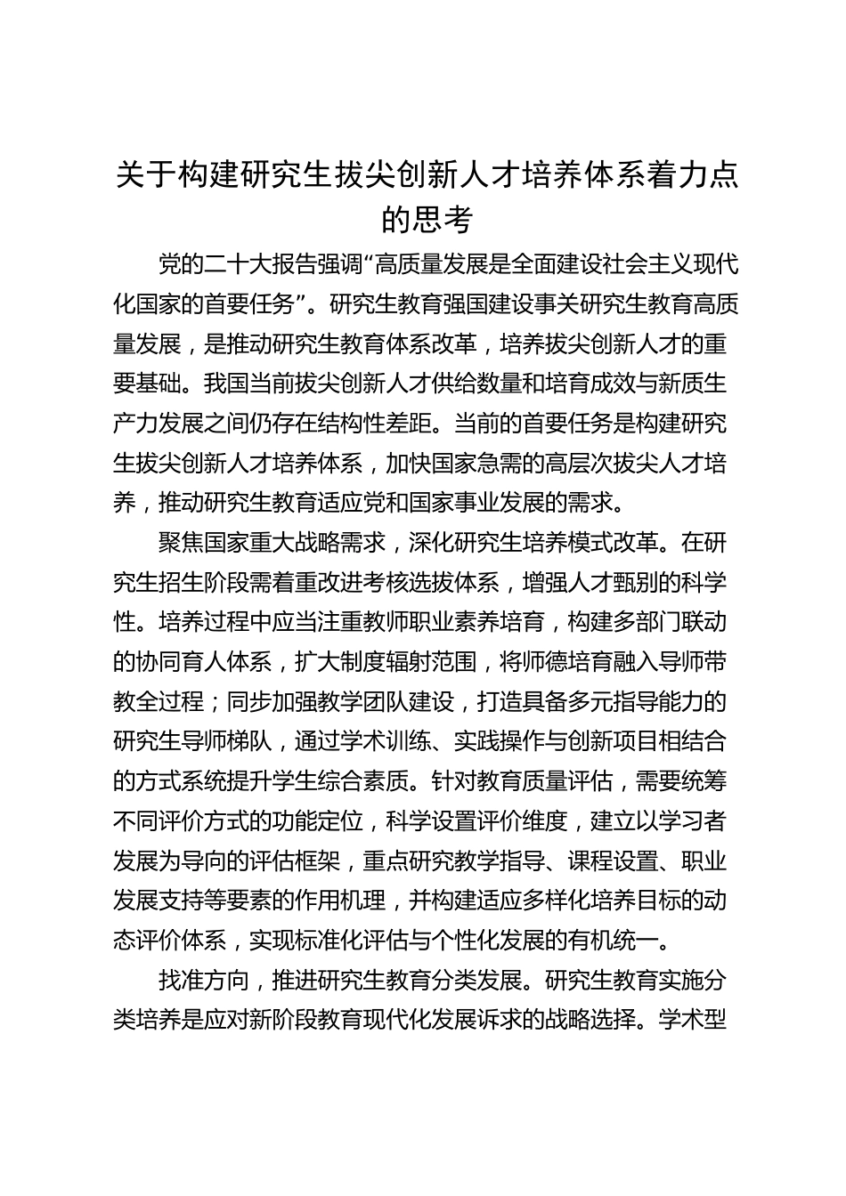關(guān)于構(gòu)建研究生拔尖創(chuàng)新人才培養(yǎng)體系著力點(diǎn)的思考VIP免費(fèi)