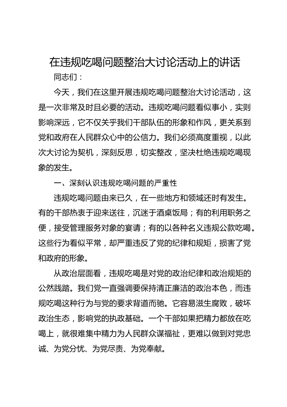 在違規(guī)吃喝問題整治大討論活動(dòng)上的講話VIP免費(fèi)