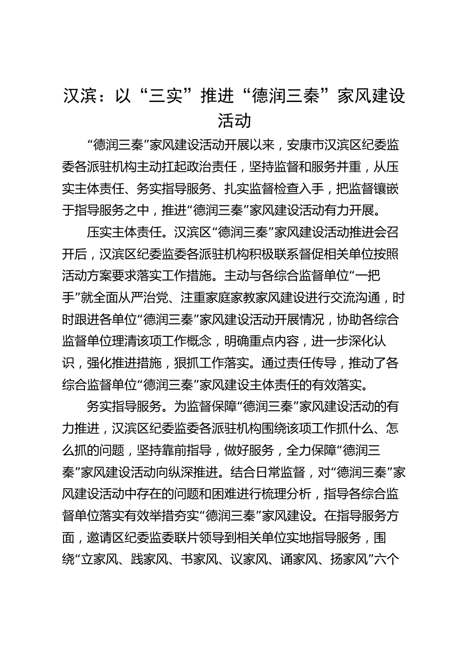漢濱:以“三實(shí)”推進(jìn)“德潤(rùn)三秦”家風(fēng)建設(shè)活動(dòng)“”德潤(rùn)三秦家風(fēng)建設(shè)活動(dòng)開(kāi)展以來(lái),安康市漢濱區(qū)紀(jì)委監(jiān)委各派駐機(jī)構(gòu)主動(dòng)扛起政治責(zé)任,堅(jiān)持監(jiān)督和服務(wù)并重,從壓實(shí)主體責(zé)任、務(wù)實(shí)指導(dǎo)服務(wù)、扎實(shí)監(jiān)督檢查入手,把監(jiān)督鑲嵌“”于指導(dǎo)服務(wù)之中,推進(jìn)德潤(rùn)三秦家風(fēng)建設(shè)活動(dòng)有力開(kāi)展?!啊眽簩?shí)主體責(zé)任。漢濱區(qū)德潤(rùn)三秦家風(fēng)建設(shè)活動(dòng)推進(jìn)會(huì)召開(kāi)后,漢濱區(qū)紀(jì)委監(jiān)委各派駐機(jī)構(gòu)積極聯(lián)系督促相關(guān)單位按照“活動(dòng)方案要求落實(shí)工作措施。主動(dòng)與各綜合監(jiān)督單位一把”手就全面從嚴(yán)治黨、注重家庭家教家風(fēng)建設(shè)進(jìn)行交流溝通,時(shí)“”時(shí)跟進(jìn)各單位德潤(rùn)三秦家風(fēng)建設(shè)活動(dòng)開(kāi)展情況,協(xié)助各綜合監(jiān)...