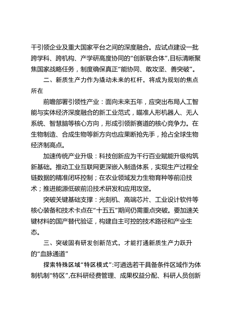 “十五五”科技創(chuàng)新規(guī)劃編制思路未來五年,我們站在歷史的隘口:新一輪科技革命重塑全球格局之勢正澎湃奔涌,而全面建設(shè)現(xiàn)代化的宏大征程亦呼喚“”內(nèi)源支撐。面對關(guān)鍵核心技術(shù)受制于人的卡脖子瓶頸、前沿“”領(lǐng)域優(yōu)勢尚待夯實的挑戰(zhàn),科技創(chuàng)新的破局已非選項,而直“”接關(guān)乎國家前途命運。十五五作為擘劃發(fā)展宏圖的坐標(biāo)圖冊,必當(dāng)開辟更為前瞻、更具力度的創(chuàng)新路徑,以新視角引領(lǐng)科技事業(yè)在關(guān)鍵隘口實現(xiàn)戰(zhàn)略突破。一、新時代的科技破局,首要在于戰(zhàn)略思路的轉(zhuǎn)換“”“”由跟跑并跑轉(zhuǎn)向并跑領(lǐng)跑:“”十五五應(yīng)更鮮明地突出前沿領(lǐng)域突破的優(yōu)先順序,選擇國家戰(zhàn)略亟需且具...