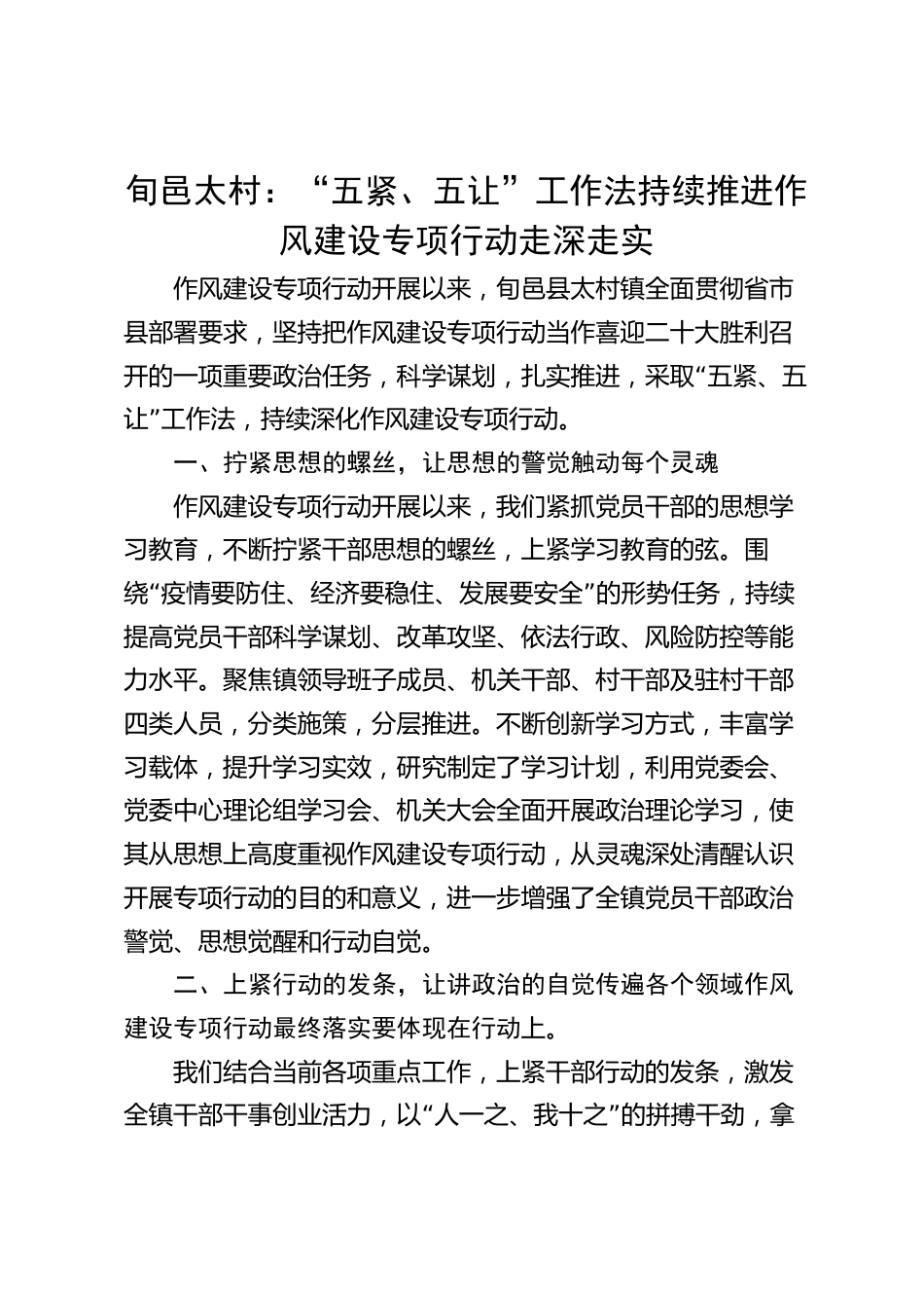旬邑太村:“五緊、五讓”工作法 持續(xù)推進(jìn)作風(fēng)建設(shè)專項(xiàng)行動(dòng)走深走實(shí)VIP免費(fèi)