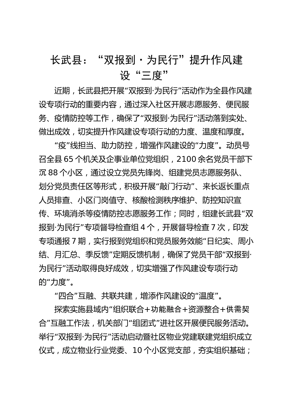 長武縣:“雙報到·為民行”提升作風(fēng)建設(shè)“三度”“近期,長武縣把開展雙報到·”為民行活動作為全縣作風(fēng)建設(shè)專項行動的重要內(nèi)容,通過深入社區(qū)開展志愿服務(wù)、便民服“務(wù)、疫情防控等工作,確保了雙報到·”為民行活動落到實處、做出成效,切實提升作風(fēng)建設(shè)專項行動的力度、溫度和厚度?!啊薄啊币呔€擔(dān)當(dāng)、助力防控,增強作風(fēng)建設(shè)的力度。動員號召全縣65個機關(guān)及企事業(yè)單位黨組織,2100余名黨員干部下沉88個小區(qū),通過設(shè)立黨員先鋒崗、組建黨員志愿服務(wù)隊、“”劃分黨員責(zé)任區(qū)等形式,積極開展敲門行動、來長返長重點人員排查、小區(qū)門崗值守、核酸檢測秩序維護、防控知識...