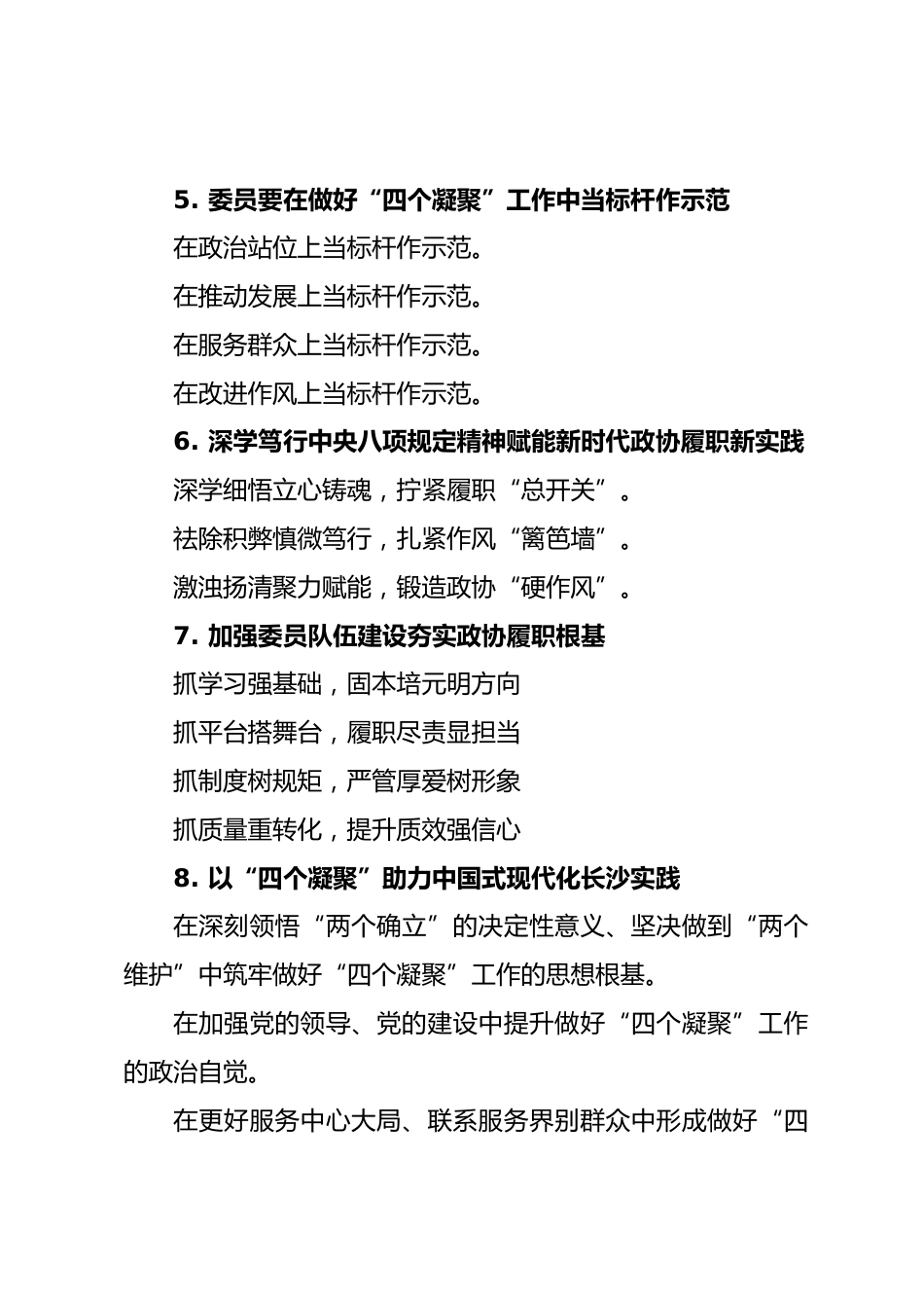 (30例)政協(xié)工作寫作提綱11.以協(xié)商之力賦能基層治理提高站位,把準(zhǔn)正確方向。創(chuàng)優(yōu)機(jī)制,創(chuàng)新增加效能。服務(wù)大局,把握著力重點(diǎn)。強(qiáng)基固本,提升協(xié)商能力。講求實(shí)效,注重成果轉(zhuǎn)化。2.串鏈延鏈強(qiáng)鏈編織為民“服務(wù)網(wǎng)”串鏈織細(xì)網(wǎng),推動(dòng)為民服務(wù)更具準(zhǔn)度。延鏈織密網(wǎng),推動(dòng)為民服務(wù)更具深度。強(qiáng)鏈織牢網(wǎng),推動(dòng)為民服務(wù)更具熱度。3.以實(shí)績實(shí)效擔(dān)當(dāng)好“四個(gè)凝聚”政治責(zé)任提高政治站位,切實(shí)擔(dān)當(dāng)好“凝聚人心”政治責(zé)任。豐富履職形式,切實(shí)擔(dān)當(dāng)好“凝聚共識(shí)”政治責(zé)任。提升協(xié)商質(zhì)效,切實(shí)擔(dān)當(dāng)好“凝聚智慧”政治責(zé)任。增強(qiáng)團(tuán)結(jié)合作,切實(shí)擔(dān)當(dāng)好“凝聚力量”政治責(zé)任。4.推動(dòng)...