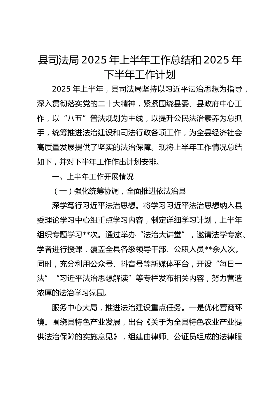 縣司法局2025年上半年工作總結(jié)和2025年下半年工作計劃VIP免費(fèi)