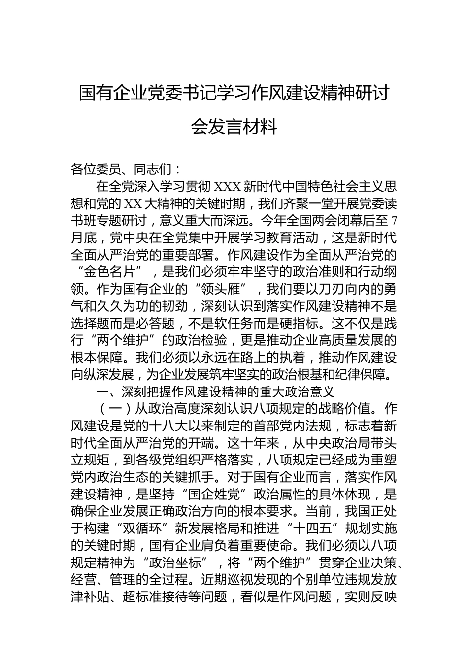 國有企業(yè)黨委書記學習作風建設精神研討會發(fā)言材料VIP免費