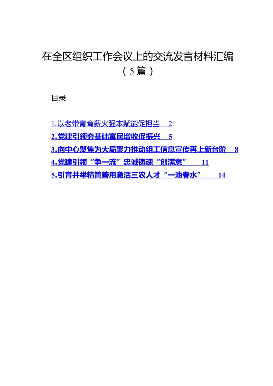 在全區(qū)組織工作會議上的交流發(fā)言材料匯編(5篇)VIP免費