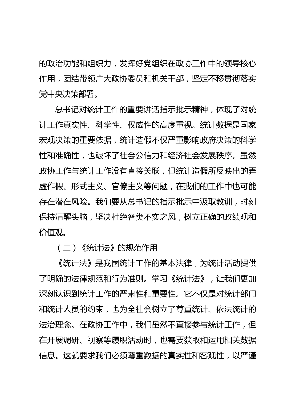 以案為鑒正風(fēng)肅紀(jì)推動(dòng)政協(xié)工作高質(zhì)量發(fā)展——關(guān)于云南省曲靖市統(tǒng)計(jì)造假、政治生態(tài)惡化典型案例交流研討發(fā)言各位同志:按照會(huì)議安排,會(huì)前我們集中學(xué)習(xí)了XXX總書(shū)記在2025年第二十一次集體學(xué)習(xí)時(shí)的重要講話精神和對(duì)統(tǒng)計(jì)工作的重要講話指示批示精神,還學(xué)習(xí)了《統(tǒng)計(jì)法》以及《關(guān)于轉(zhuǎn)發(fā)層面學(xué)習(xí)教育工作專班<關(guān)于把云南省曲靖市統(tǒng)計(jì)造假、政治生態(tài)惡化的典型案例作為學(xué)習(xí)教育反面教材的通知>的通知》等內(nèi)容。通過(guò)深入學(xué)習(xí),我深受觸動(dòng)、倍感警醒。下面,我圍繞此次學(xué)習(xí)主題,結(jié)合區(qū)政協(xié)工作實(shí)際,淺談一下自己的體會(huì)。一、深刻領(lǐng)會(huì)學(xué)習(xí)內(nèi)容,筑牢思想防線(一)XXX總書(shū)記重要...
