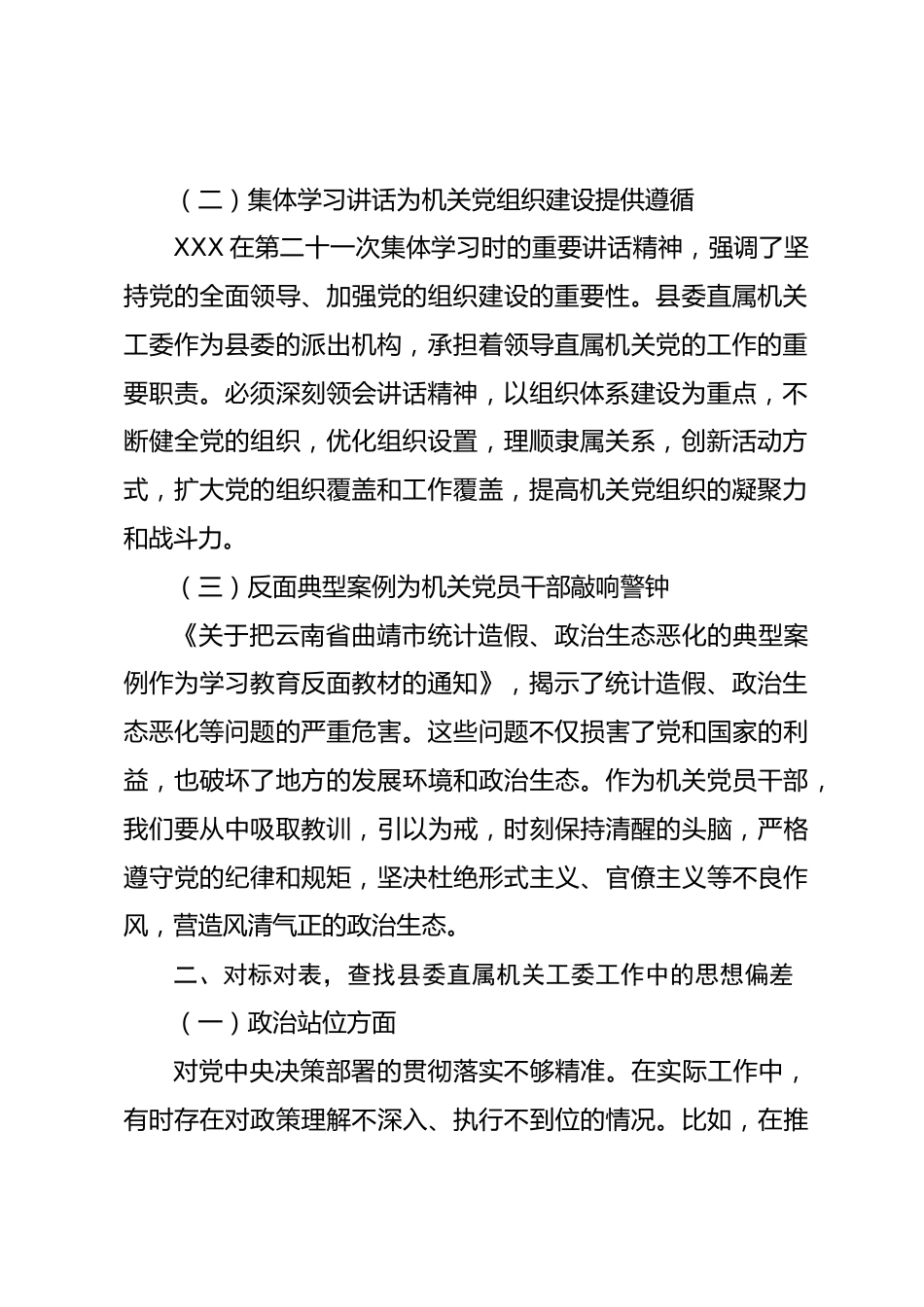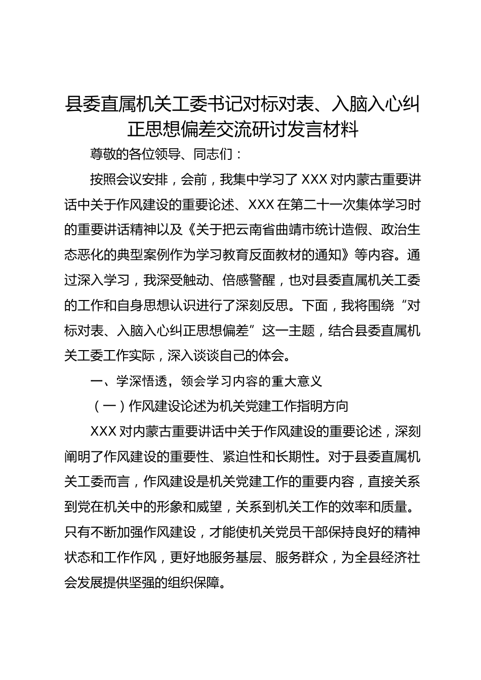 縣委直屬機關(guān)工委書記對標(biāo)對表、入腦入心糾正思想偏差交流研討發(fā)言材料VIP免費