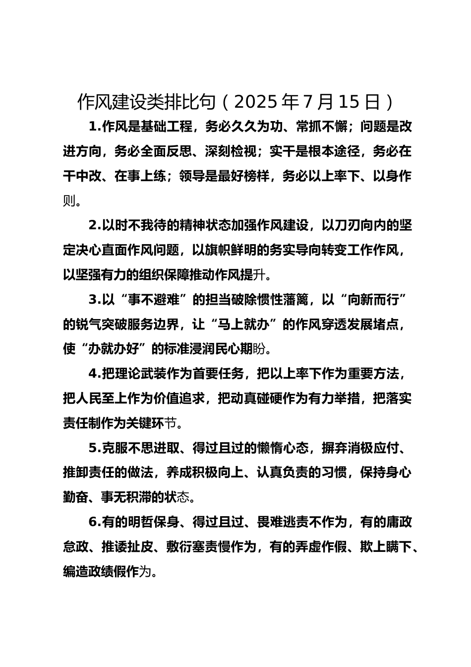作風建設(shè)類排比句(2025年7月15日)VIP免費