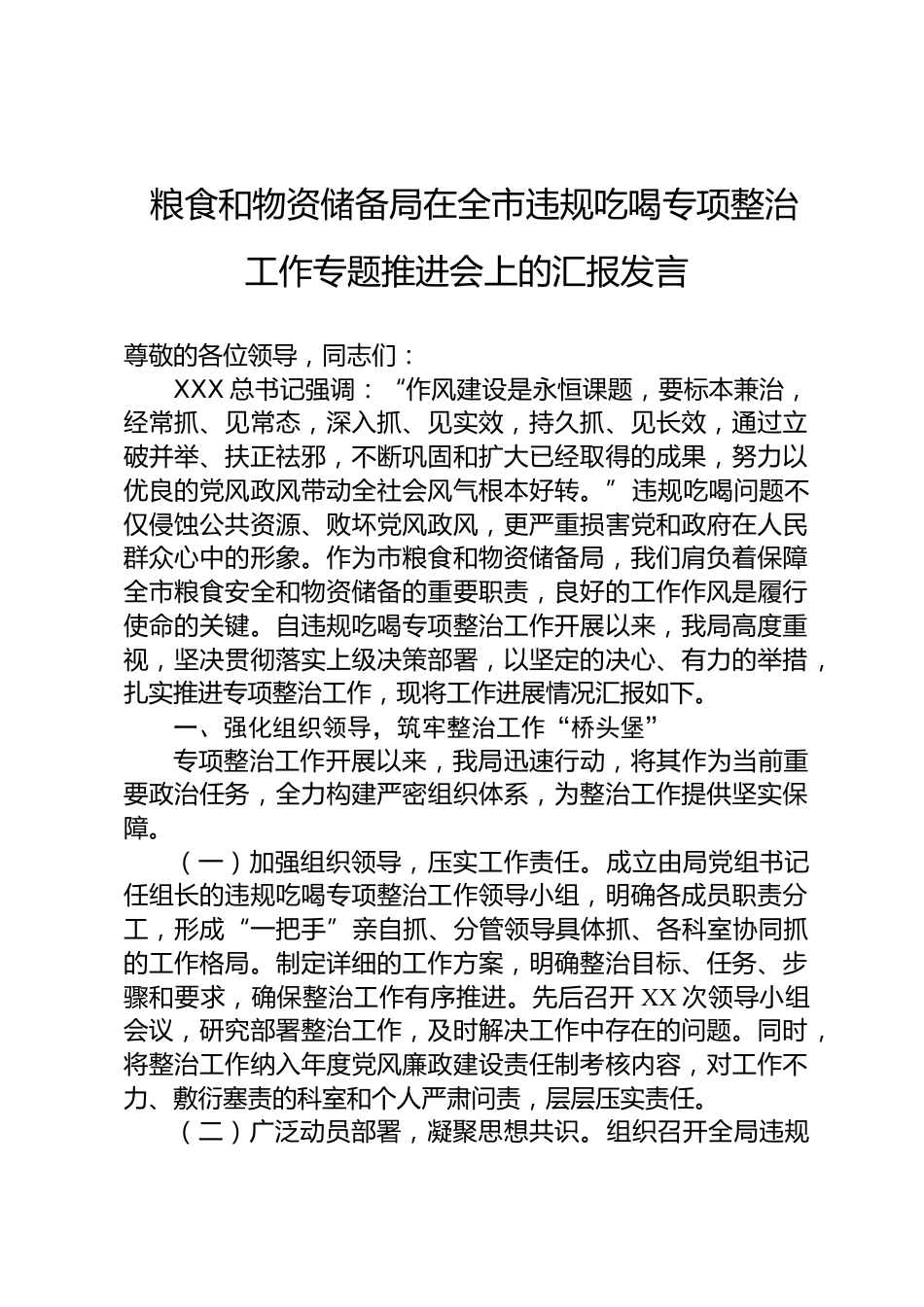 糧食和物資儲備局在全市違規(guī)吃喝專項整治工作專題推進會上的匯報發(fā)言VIP免費