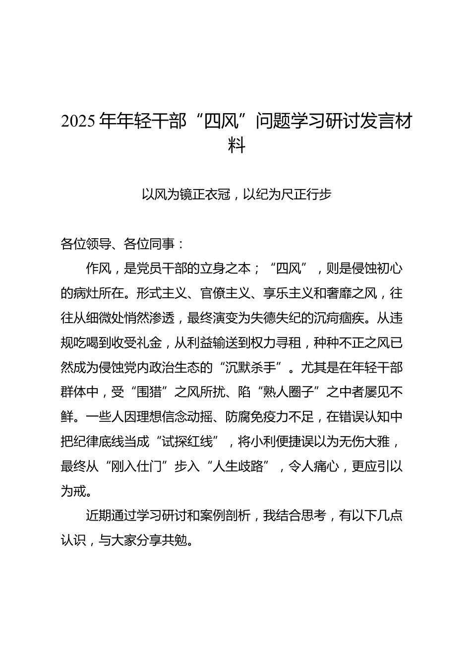 2025年年輕干部“四風(fēng)”問題學(xué)習(xí)研討發(fā)言材料:以風(fēng)為鏡正衣冠,以紀(jì)為尺正行步VIP免費(fèi)