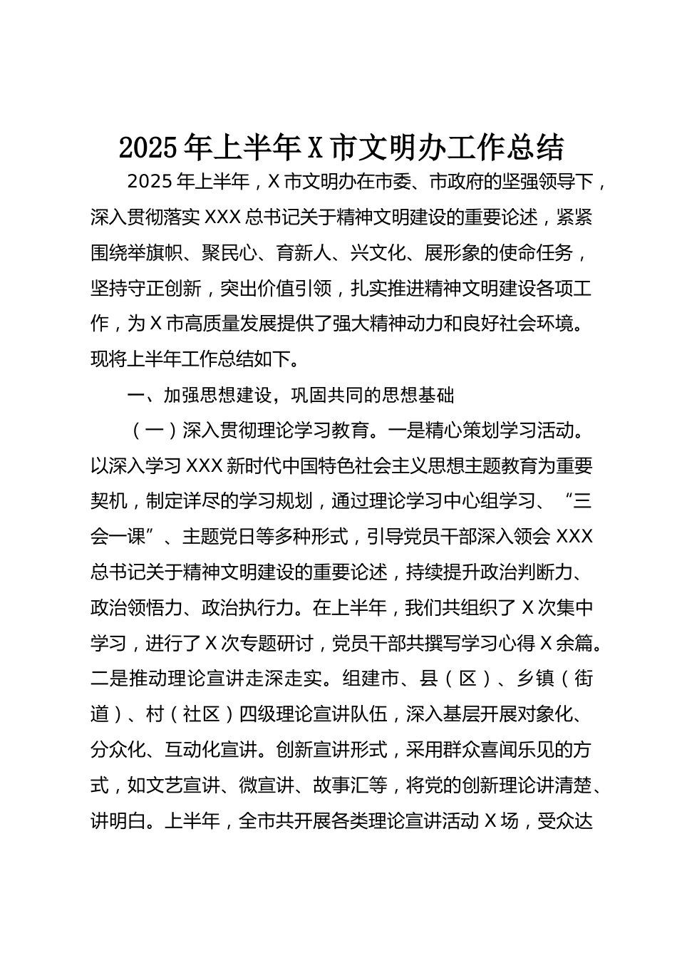 2025年上半年X市文明辦工作總結(jié)VIP免費(fèi)