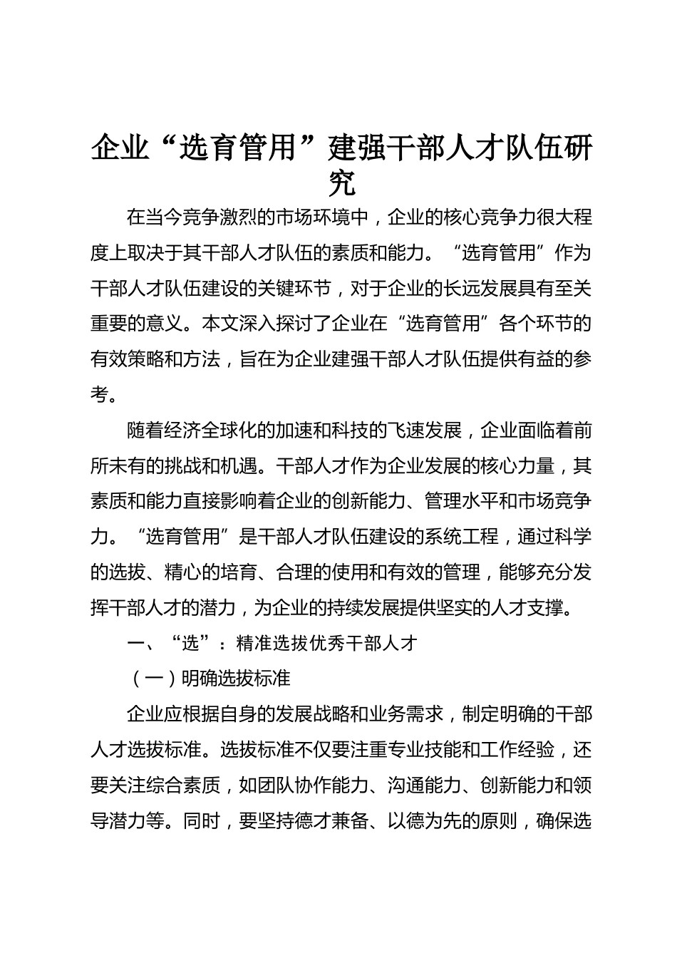 企業(yè)“選育管用”建強干部人才隊伍研究VIP免費