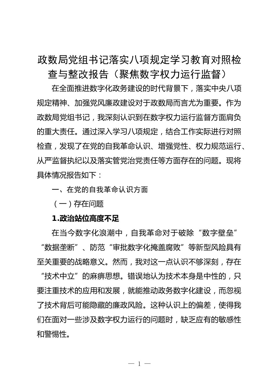 2025政數(shù)局黨組書記落實(shí)八項(xiàng)規(guī)定學(xué)習(xí)教育對(duì)照檢查與整改報(bào)告(五個(gè)方面)VIP免費(fèi)