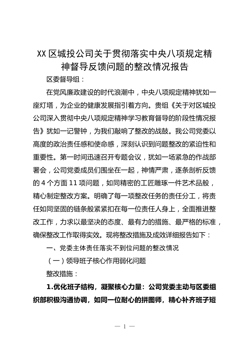 XX區(qū)城投公司關(guān)于貫徹落實中央八項規(guī)定精神督導(dǎo)反饋問題的整改情況報告(11個方面)VIP免費(fèi)
