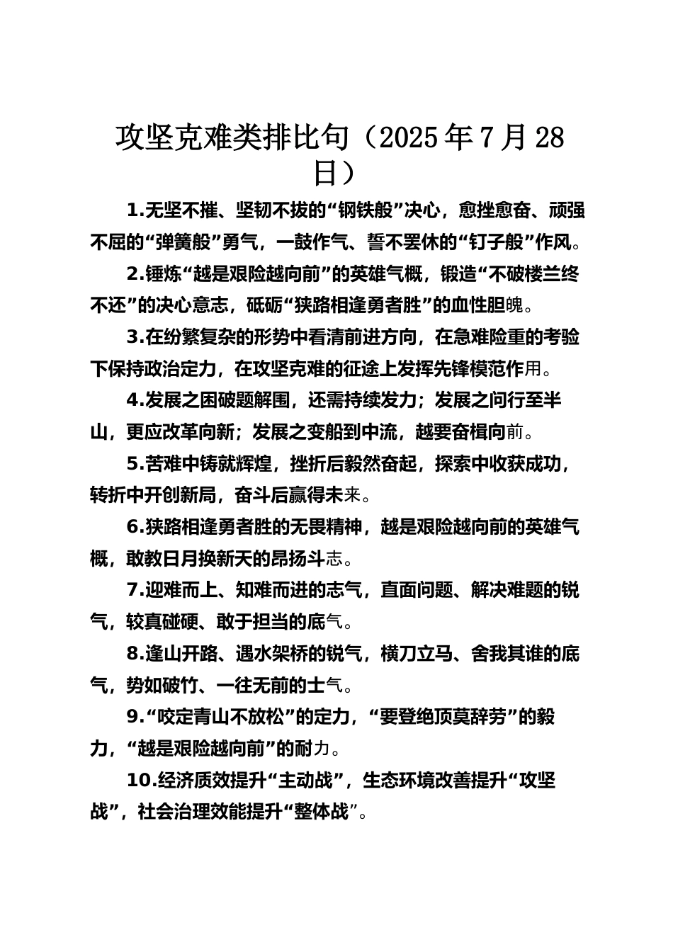 攻堅(jiān)克難類(lèi)排比句(2025年7月28日)VIP免費(fèi)
