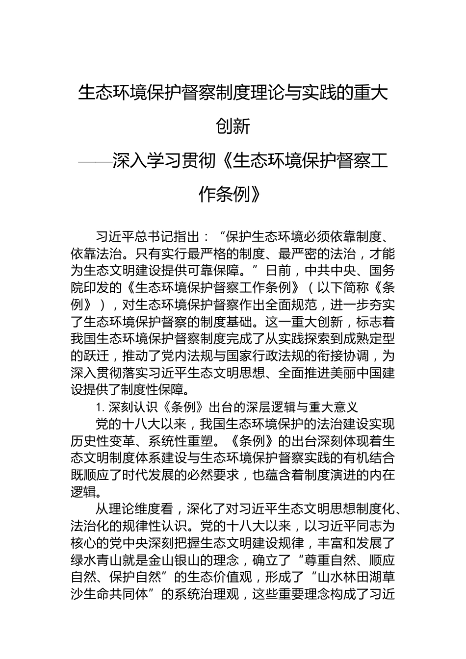 生態(tài)環(huán)境保護(hù)督察制度理論與實(shí)踐的重大創(chuàng)新VIP免費(fèi)