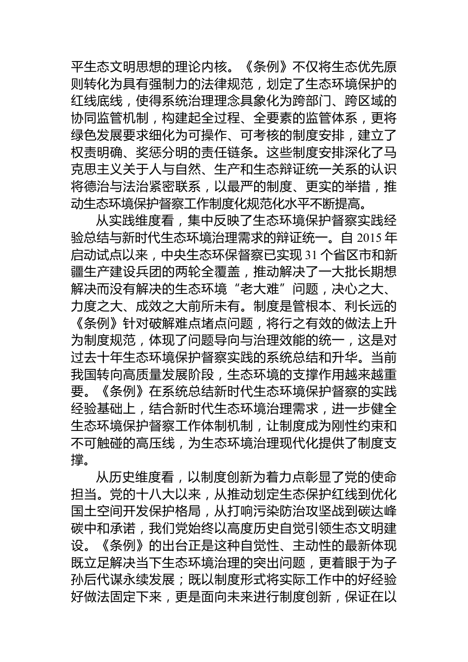 生態(tài)環(huán)境保護(hù)督察制度理論與實(shí)踐的重大創(chuàng)新——深入學(xué)習(xí)貫徹《生態(tài)環(huán)境保護(hù)督察工作條例》習(xí)近平總書記指出:“保護(hù)生態(tài)環(huán)境必須依靠制度、依靠法治。只有實(shí)行最嚴(yán)格的制度、最嚴(yán)密的法治,才能為生態(tài)文明建設(shè)提供可靠保障?!比涨埃泄仓醒?、國務(wù)院印發(fā)的《生態(tài)環(huán)境保護(hù)督察工作條例》(以下簡稱《條例》),對(duì)生態(tài)環(huán)境保護(hù)督察作出全面規(guī)范,進(jìn)一步夯實(shí)了生態(tài)環(huán)境保護(hù)督察的制度基礎(chǔ)。這一重大創(chuàng)新,標(biāo)志著我國生態(tài)環(huán)境保護(hù)督察制度完成了從實(shí)踐探索到成熟定型的躍遷,推動(dòng)了黨內(nèi)法規(guī)與國家行政法規(guī)的銜接協(xié)調(diào),為深入貫徹落實(shí)習(xí)近平生態(tài)文明思想、全面推進(jìn)美麗中國建...