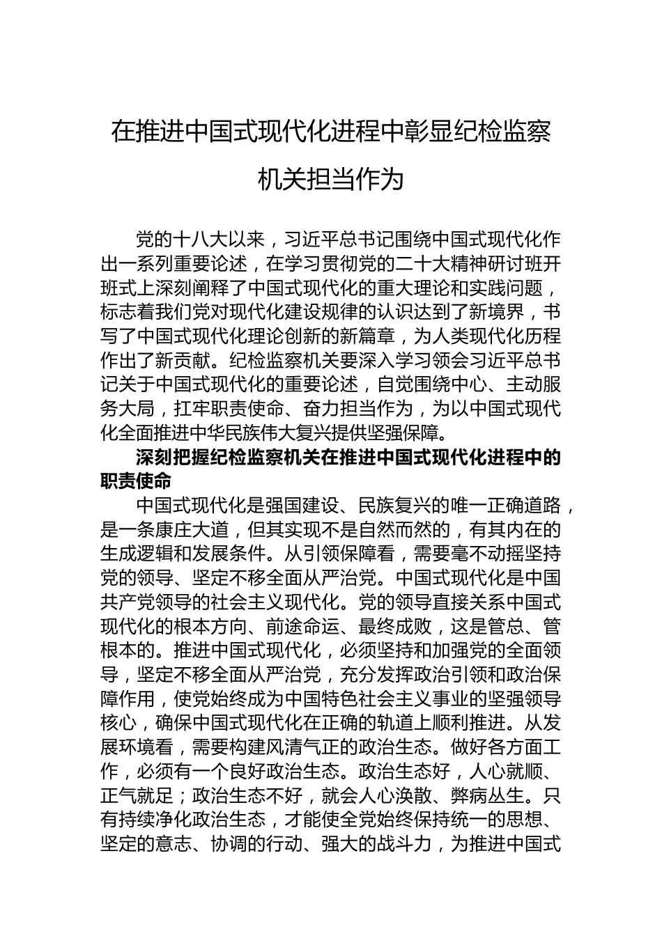 在推進中國式現(xiàn)代化進程中彰顯紀檢監(jiān)察機關(guān)擔當作為VIP免費