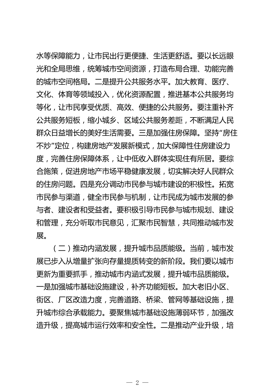 發(fā)改委主任在黨組理論學(xué)習(xí)中心組專題學(xué)習(xí)中央城市工作會議精神研討交流會上的發(fā)言同志們:在新時代城市發(fā)展的關(guān)鍵時期,中央城市工作會議勝利召開。習(xí)近平總書記的重要講話,為我們的城市工作照亮了前行道路,提供了根本遵循。作為市發(fā)改委主任,我深感責(zé)任在肩、使命光榮。在此,結(jié)合工作實際,就學(xué)習(xí)貫徹中央城市工作會議精神,與大家分享幾點認(rèn)識和體會。一、深研會議精髓,校準(zhǔn)城市發(fā)展航標(biāo)中央城市工作會議站位高遠(yuǎn)、統(tǒng)攬全局,系統(tǒng)解答了城市發(fā)展的一系列重大問題,為我們指引了前進方向。我們務(wù)必深入學(xué)習(xí)領(lǐng)會,精準(zhǔn)把握精神實質(zhì),切實把思想和行動統(tǒng)一到黨“中央...