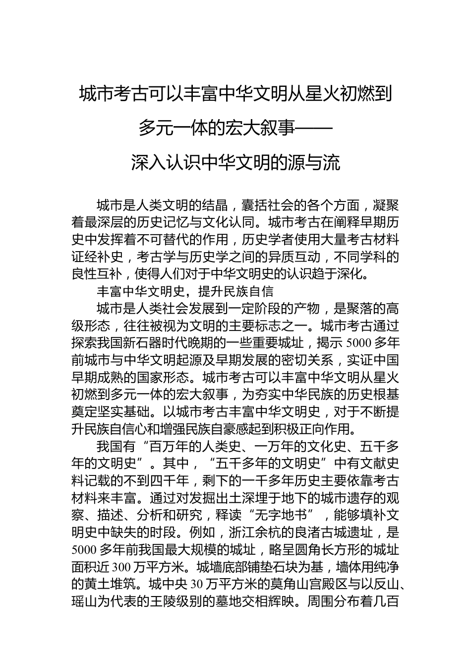 城市考古可以豐富中華文明從星火初燃到多元一體的宏大敘事——深入認(rèn)識中華文明的源與流城市是人類文明的結(jié)晶,囊括社會的各個(gè)方面,凝聚著最深層的歷史記憶與文化認(rèn)同。城市考古在闡釋早期歷史中發(fā)揮著不可替代的作用,歷史學(xué)者使用大量考古材料證經(jīng)補(bǔ)史,考古學(xué)與歷史學(xué)之間的異質(zhì)互動,不同學(xué)科的良性互補(bǔ),使得人們對于中華文明史的認(rèn)識趨于深化。豐富中華文明史,提升民族自信城市是人類社會發(fā)展到一定階段的產(chǎn)物,是聚落的高級形態(tài),往往被視為文明的主要標(biāo)志之一。城市考古通過探索我國新石器時(shí)代晚期的一些重要城址,揭示5000多年前城市與中華文明起源及早期發(fā)展...